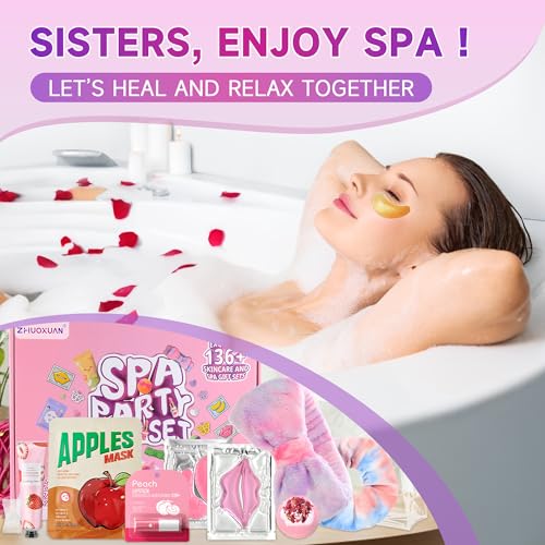 136Pcs Spa Party Supplies Set - 12 Spa Day Kits with Face/Lip/Eye/Hand/Foot Care,Party Favors for Sleepovers,Birthdays,Slumber Party & Relaxation,All Skin Types Safe