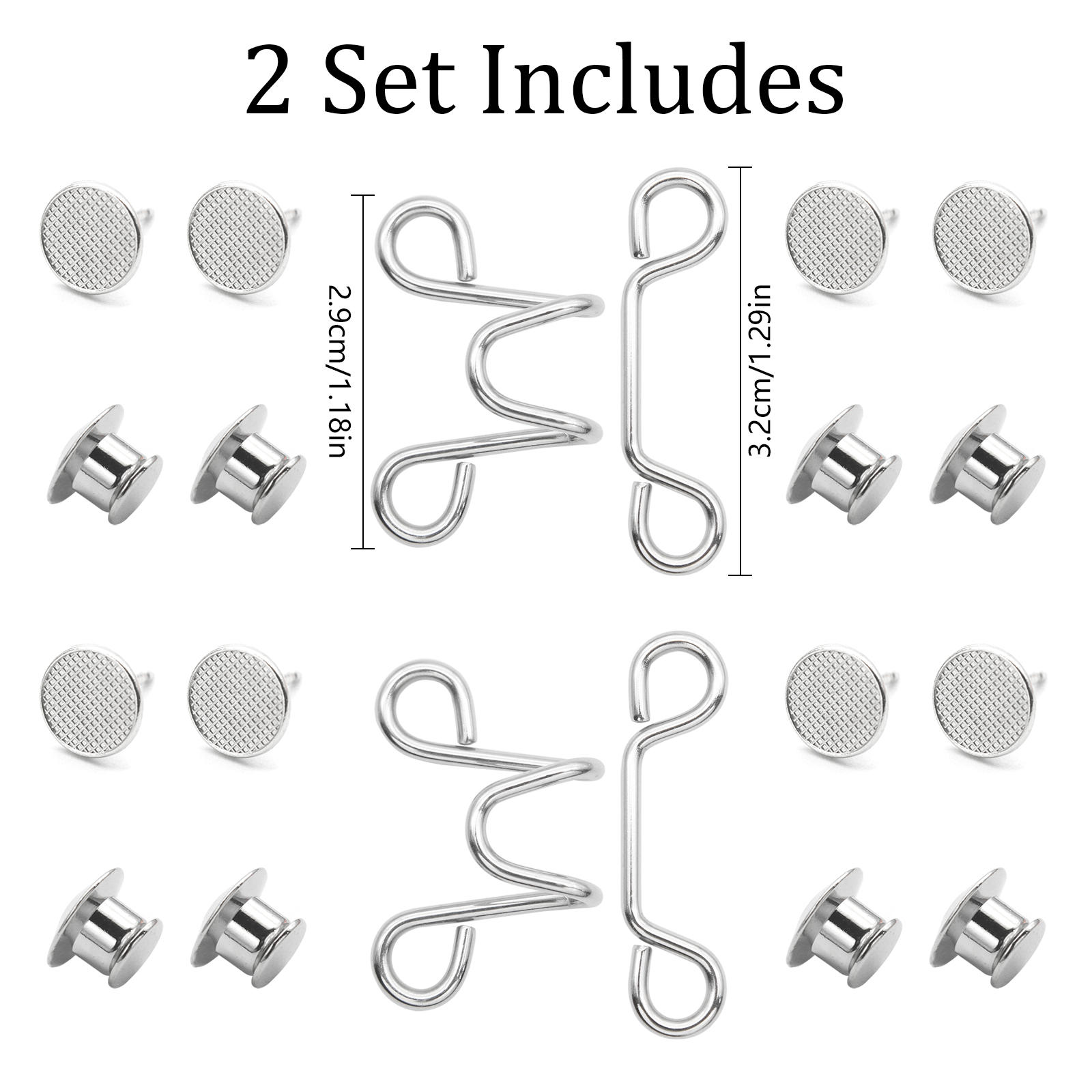 Material: stainless steel True to description: True to description Color: black Used to fasten the waistband of the pants to prevent it from being wide. Haven't tried it yet but looks solid.