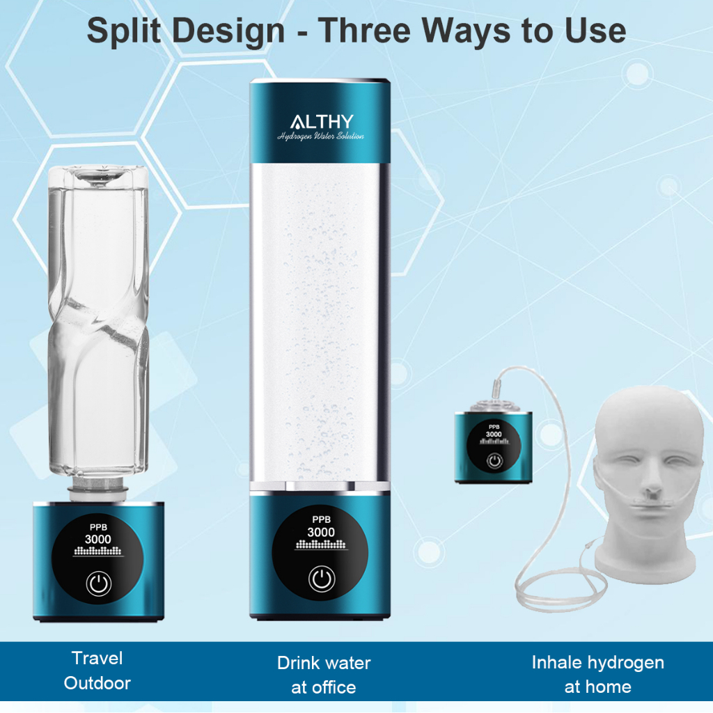 ALTHY 7th Generation Hydrogen Water Generator Bottle DuPont SPE+PEM Dual Chamber Maker lonizer Cup + H2 Inhalation device