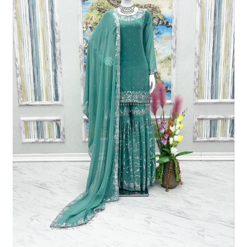 Added new colours *Ready to wear* -3 piece set (kurti+Plazzo+dupatta) designer sharara suit