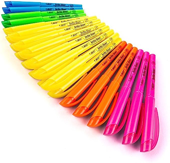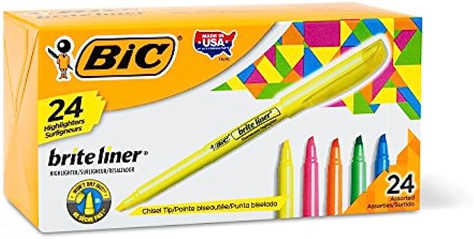 BIC Brite Liner Highlighter, Chisel Tip, Assorted Colors, 24-Count, Chisel Tip for Broad Highlighting or Fine Underlining