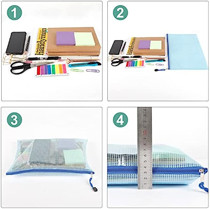 • PRODUCT SIZE: 13.2" x 9.25"/33.5cm x 23cm. The mesh zipper pouch larger than letter size/A4 size, please confirm the size of the product carefully before purchase.