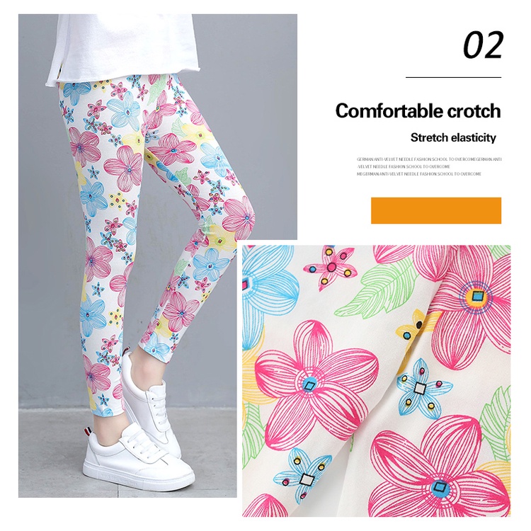 Kids Leggings For Girls Long Pants Flower Print Comfort Cotton Beauty Legging Girls Tights