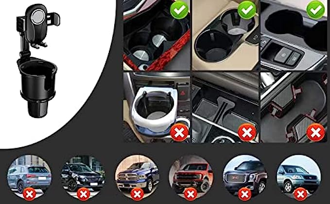 ? Easy to install: adjust the knob on the cup holder to adapt to the cup holder of the car or truck, and the adjustment button at the back of the car phone holder can easily adjust the width. Various types of mobile phones can find the right width.