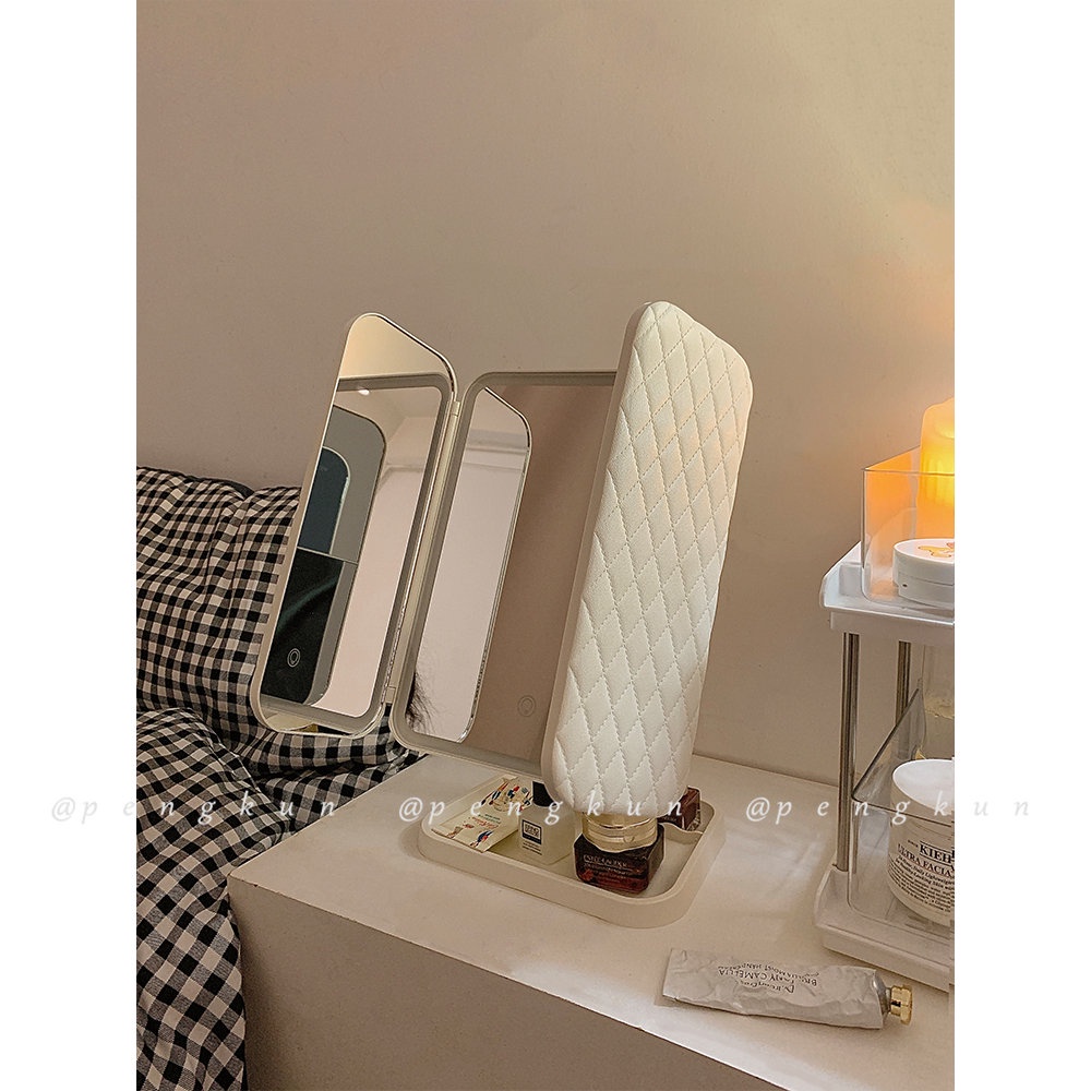 Shell Double Door led Makeup Mirror With Light Storage Box Integrated Desktop Foldable Adjustable Student