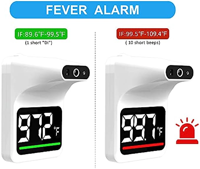 • Fever Alarm : When ≥ 37. 5℃ (99.5℉) is detected, the color indicator will switch from green to red and the alarm will give 10 short beeps to draw attention.