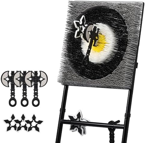 Sponsored Ad - A11N SPORTS Axe Throwing Game with Steel Frame and Bristle Target, Safe Indoor Outdoor Target Game Set, Adjustable Height Yard Game with Axes & Stars for Backyard, Lawn, or Party Play