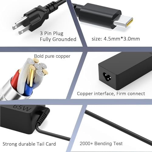 Replacement for 65W Lenovo Laptop Charger USB C ;Compatible with Lenovo ThinkPad T480s T580s T490 E480 E580 Chromebook C330 S330 100e 300e 500e,Yoga C930 C940 720 Power Supply Adapter Cord