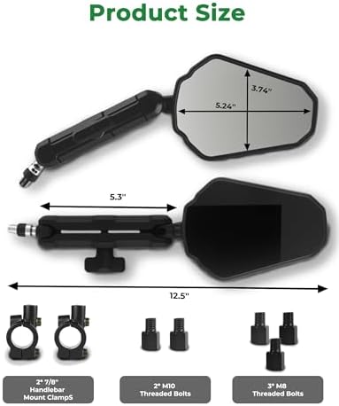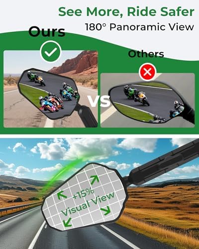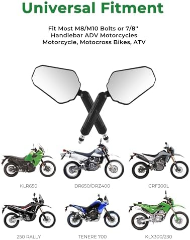 Sponsored Ad - Adventure Motorcycle Mirrors, VOUTRAK Universal Convex Rear View Mirror, M8 M10 Bolt & 7/8" Handlebar Mount, Foldable, Ball Joint, 360° Adjustable, Anti-Vibration for Dirt Bike, ATV, Sc