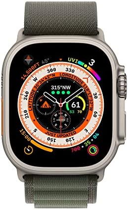 Apple Watch Ultra [GPS + Cellular 49mm] Titanium Case with Green Alpine Loop, Large (Renewed)