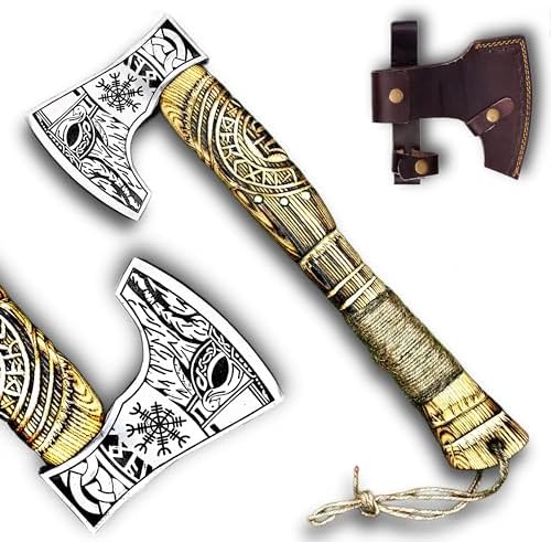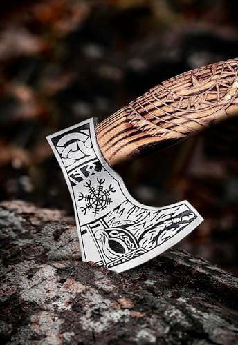 Poshland AX-7992 Custom Gift Forged Carbon Steel Viking Axe with Rose Wood Shaft, Viking Bearded Camping Axe, Mens Gift, Axe