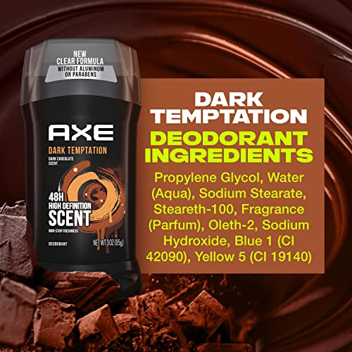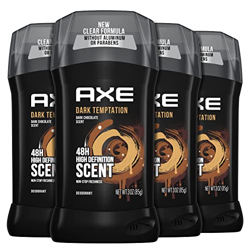 AXE Deodorant Stick for Men For Long Lasting Odor Protection, Dark Temptation Smooth Dark Chocolate Scent Men's Deo, Formulated Without Aluminum 3oz 4 Count