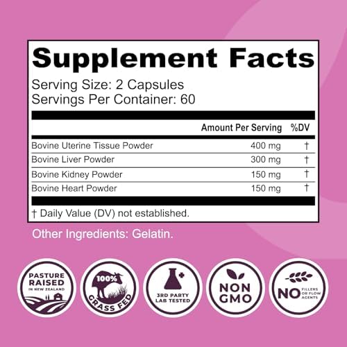 Beef Organ Supplement for Women - Beef Liver, Kidney, Heart and Uterus Tissue, Supports Women's Overall Energy and Health - Pasture Raised in New Zealand - No Fillers or Flow Agents - 120 Capsules