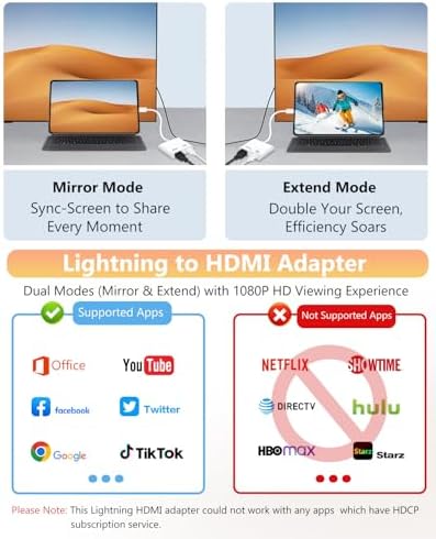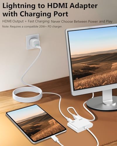 Lightning to HDMI Adapter for iPhone, [Apple MFi Certified] Digital AV Dongle,1080P Sync Screen Cable with Lightning Charging Port for iPhone, iPad to TV/Projector/Monitor No Need Power Supply