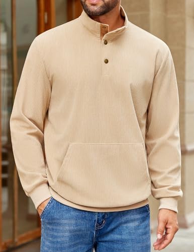 Sponsored Ad - Mens Corduroy Sweatshirt Long Sleeve Pullover Quarter Button Fall Sweat Shirts