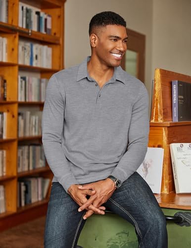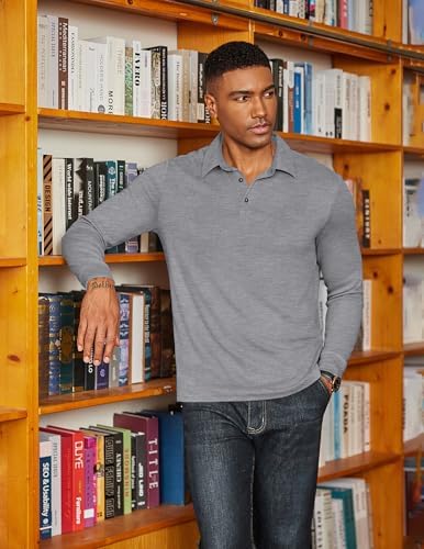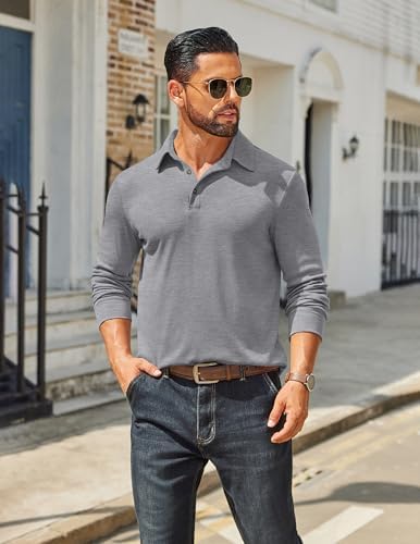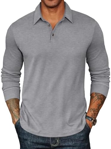 Sponsored Ad - Mens Long Sleeve Polo Shirts Classic Casual Button Polo Tee Lightweight Collared Golf Shirt