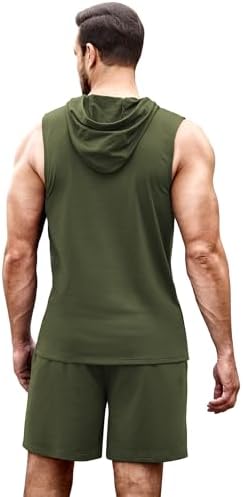 Sponsored Ad - Mens Sleeveless Workout Hoodie Shorts Set 2 Piece Outfits Hooded Tank Tops Gym Tracksuit Sweatsuits