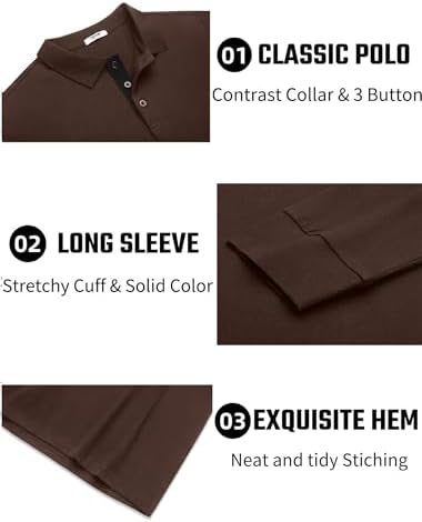 Sponsored Ad - Mens Long Sleeve Polo Shirts Cotton Collared Shirts Casual Business Polo Classic Golf T Shirts