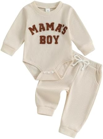 Baby Boy Clothes Letters Embroidered Baby Sweatshirt Romper Waffle Pants Set Infant Boy Fall Winter Outfits