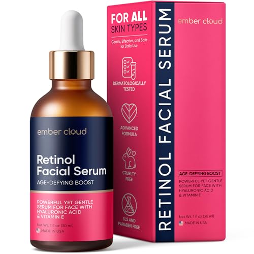 Sponsored Ad - Retinol Serum for Face with Hyaluronic Acid, Vitamin E & Aloe Vera Anti-Aging Serum - All Skin Types - Supports Even Tone - Day and Night - Made in USA - 1 Oz
