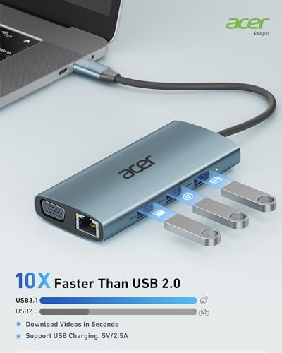USB C Hub with 4K HDMI, 9-in-1 USB C to Ethernet Adapter, 5Gbps USBA 3.0 Docking Station, VGA Splitter, SD Card Reader, PD 100W Charging for MacBook, Acer, Laptops, Surface and More