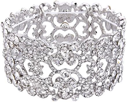 EVER FAITH Women's Austrian Crystal Bride Heart Art Deco Elastic Stretch Bracelet Clear