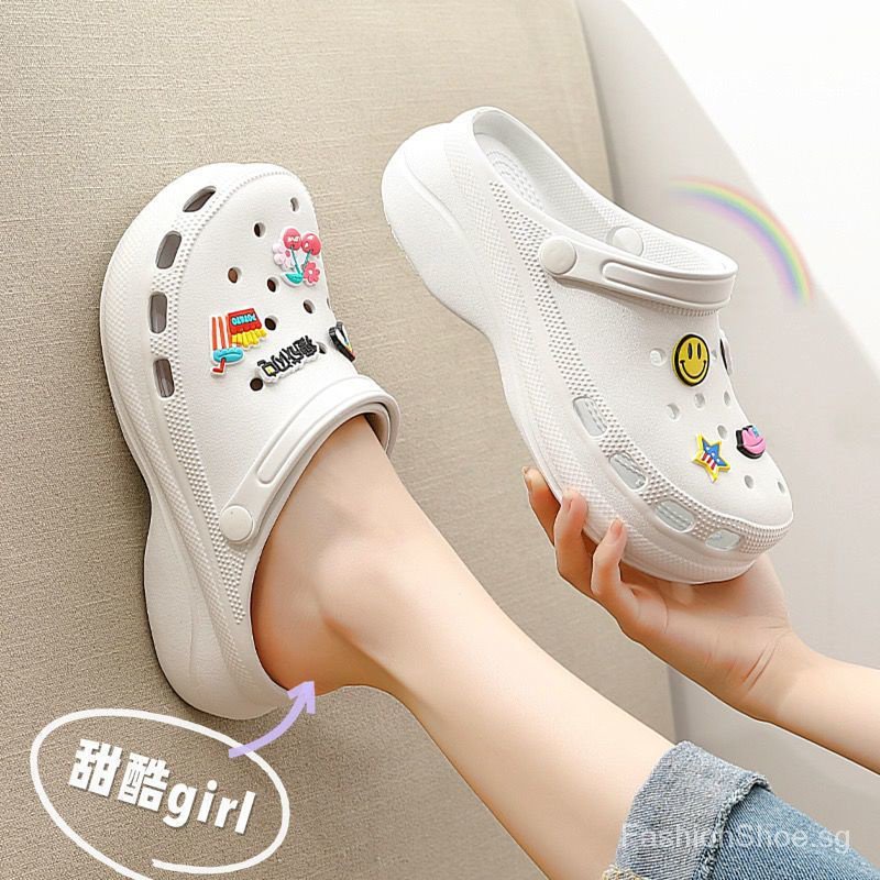 Colour:white but looks greyish to me. My usual size is 39 and I ordered 40/41 and it fits just nice. Looks very similar to Crocs. If not too particular, value for money. Will purchase again.