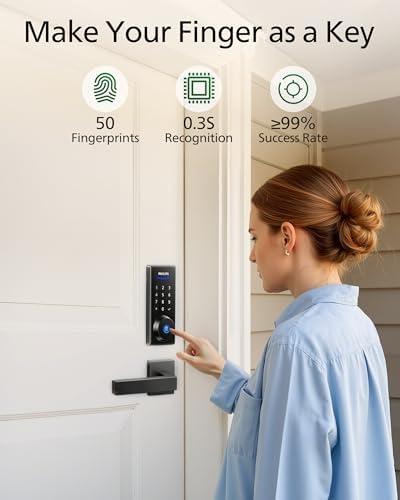 Sponsored Ad - Fingerprint Keyless Entry Door Lock, Electronic Door Lock with Touchscreen, Long-Lasting Battery, Auto Locking, One-Time Code, Keypad Deadbolt, One-Touch Locking, Matte Black