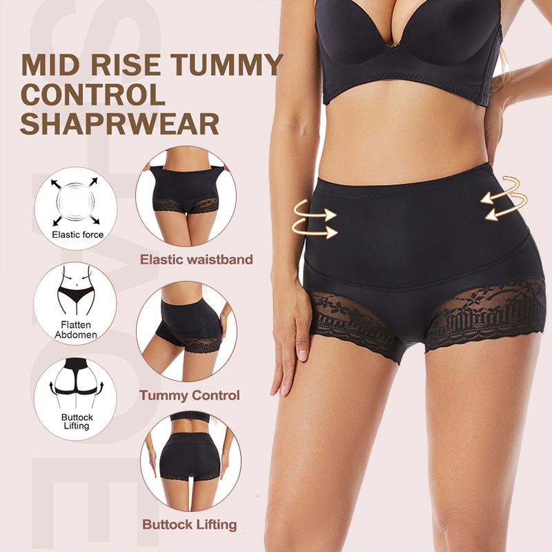 Flarixa women Lace High Waist Panties Tummy Control Shorts