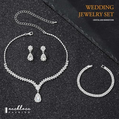 GORAIS Prom Wedding Jewelry Sets Rhinestone Bridal Necklace Earrings Bracelet Set Crystal Costume Jewelry for Brides