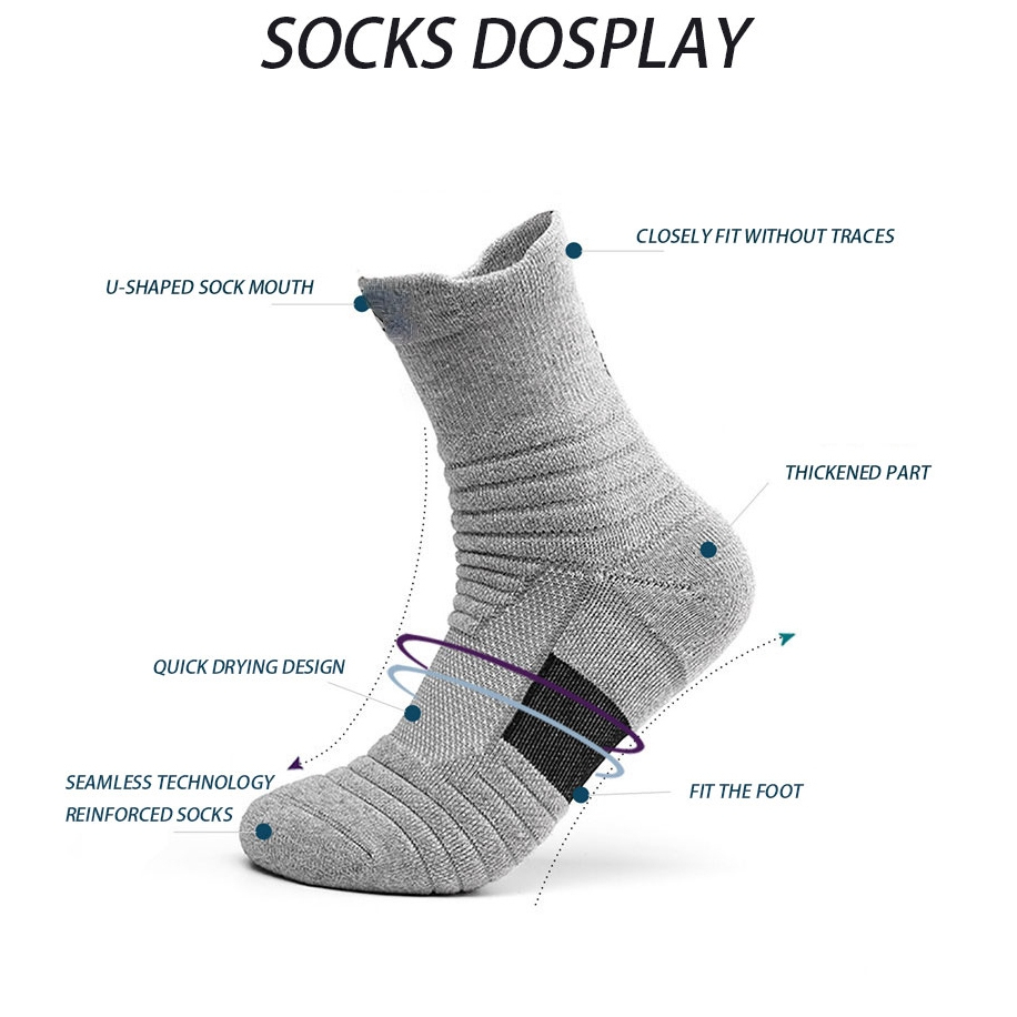 High-quality Sports Socks/Running, Basketball, Football, Cycling, Tennis, Skiing Men's Women's Sports Socks/Anti-slip, Breathable, Moisture Absorption, Moisture Wicking, Thick Cotton Socks