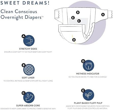 Sponsored Ad - Clean Conscious Overnight Diapers for Sensitive Skin, Hypoallergenic Fragrance-Free Baby Diapers, Cozy Cloud and Star Signs Design, Club Box, Size 3 (16–28 lbs), 52 Count