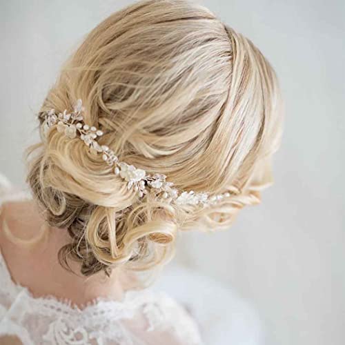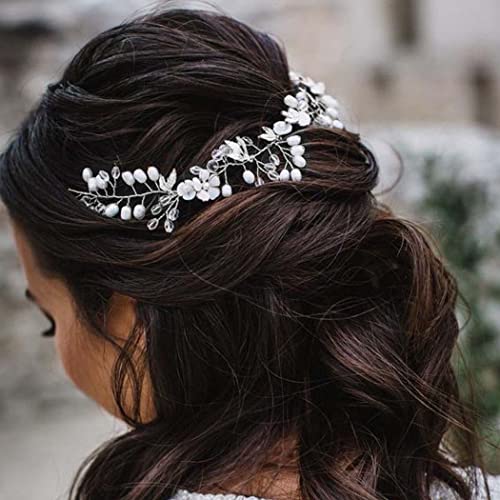 JONKY Bride Pearl Bride Hair Piece Leaf Wedding Headbands Flower Wedding Headpieces Crystal Bridal Hair Accessories for Women (Silver)