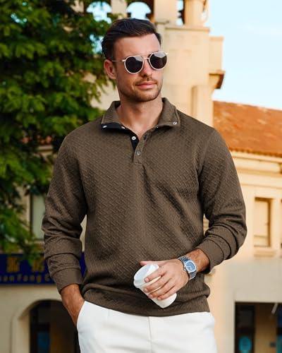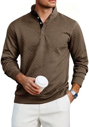 Sponsored Ad - Mens Fashion Quilted Long Sleeve Sweatshirts Thermal Stand Collar Quarter Button Up Pullover Sweatshirt