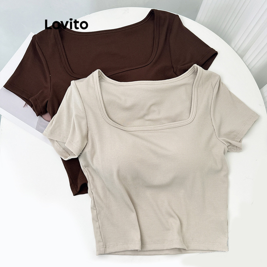 Lovito Casual Plain Basic T-Shirt for Women LNE24089 (Multi-color)