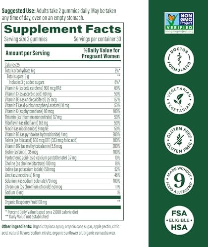 Sponsored Ad - MegaFood Baby & Me 2 Prenatal Vitamins for Women Gummies with Folic Acid and Choline for Baby’s Brain Development; Plus Real Fruit- Red Raspberry Flavor - 60 Gummies (30 Servings)