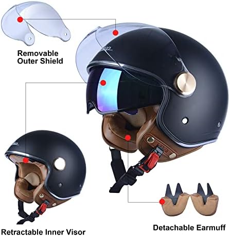 Sponsored Ad - Open Face Motorcycle Helmet for Adults, DOT Approved,3/4 Retro Vespa Helmet, Dual Visors Men's and Women's Motorbike Casco for Moped Cruiser Bobber and Chopper