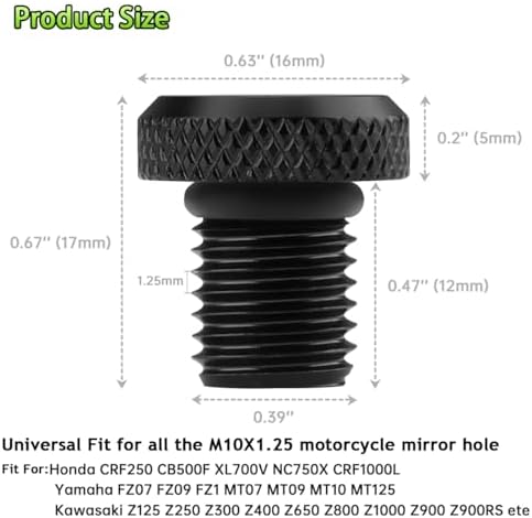 3 Pcs Motorcycle Mirror Hole Plug M10x1.25, Universal Space Aluminum Motorcycle Rear View Mirror Screws Suitable for Most Motorcycle(Honda,Yamaha, Kawasaki, Suzuki,Ducati) ATV and Bike etc(Black)