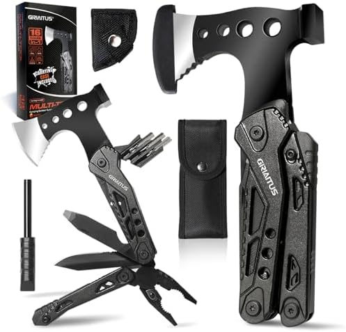 Camping Multitool Accessories Stocking Stuffers for Men 16 in 1 Multi Tool Survival Gear with Axe Hammer Pliers Saw Screwdrivers Bottle Opener Whistle with Sheath for Hiking, Gifts for Men Dad Him