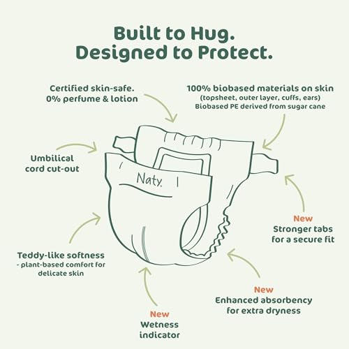 Sponsored Ad - Naty BioEmbrace Baby Newborn Diapers Size 1 (4–11 lbs) | 100% Biobased on Skin | Plant-Based Softness | Dermatologically Tested, Super Absorbent | 25 Count