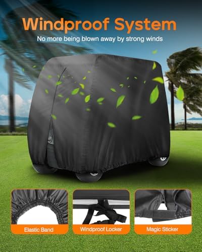Sponsored Ad - Golf Cart Cover 4 Passenger Heavy Duty, 420D Waterproof Golf Cart Covers Extended Roof Compatible with EZ GO Club Car Yamaha Golf Carts, Outdoor Dustproof 4 Seat Club Car Cover (Up to 1