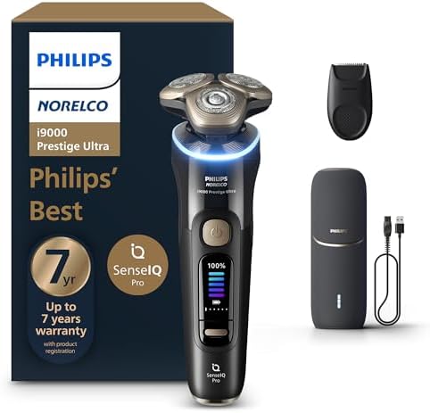 Sponsored Ad - Philips Norelco Shaver i9000 Prestige Ultra, Wet & Dry Electric Shaver, Ink Black, SenseIQ Pro Technology, Triple Lift & Cut System, 360 Rotating NanoTech Precision Blades, 5 Shaving Mo
