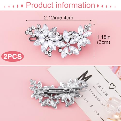PAGOW Hair Clips, 2Pcs Crystal Flower Bridal Hair Accessories, Silver Rhinestone Hair Pins, Wedding Headpiece for Brides Women Girls