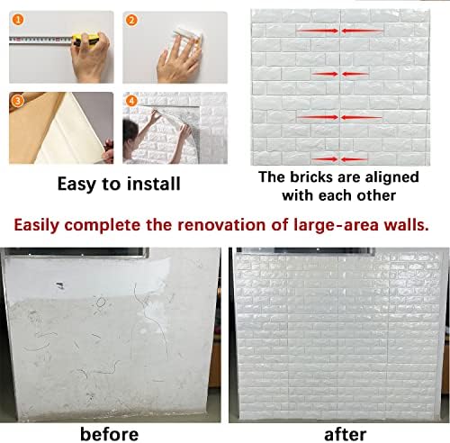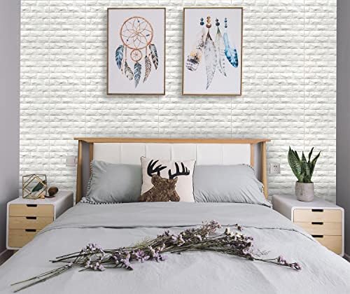 Sponsored Ad - 3D Wall Panels Peel and Stick 11PCS White Foam Brick Wallpaper for Bedroom Faux Stone Wall Panel Self-Adhesive Wallpaper (11PCS-10.65 Sq Ft, White)