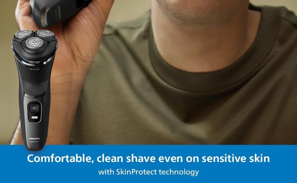 Shaver for Men Series 3000 Rechargeable Wet/Dry Mens Electric Shavers Electric Razor for Men- Modern Steel Metallic