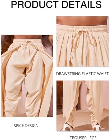 Mens Linen Harem Pants Casual Elastic Waist Pants Baggy Boho Yoga Hippie Summer Beach Kurta Dhoti Trousers