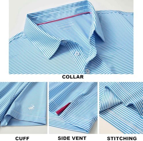 Sponsored Ad - Mens Golf Shirt Moisture Wicking Dry Fit Performance Sport Short Sleeve Striped Golf Polo Shirts for Men