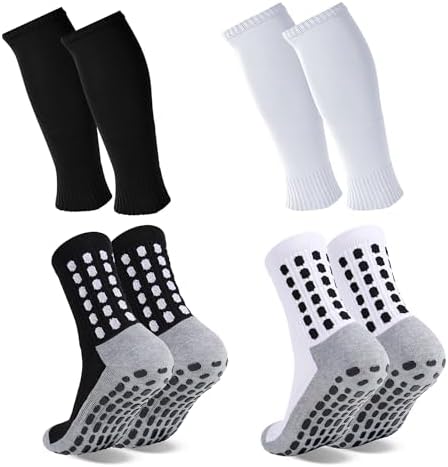 Sponsored Ad - 2 Set Grip Soccer Socks with Shin Guard Sleeves Non Slip Soccer Leg Sleeve Socks for Men Women