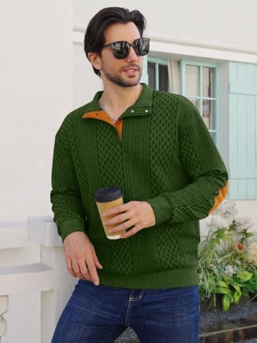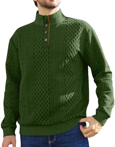 Sponsored Ad - Men's Block Striped Sweatshirt Casual Outdoor Long Sleeve Stand Collar Pullover Sweatshirt Button Quarter Sweater