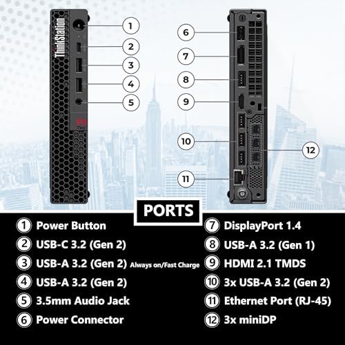Lenovo ThinkStation P3 Tiny Workstation Intel i7-14700, 32GB DDR5, 1TB NVMe, T400 4GB Discrete Graphics, WiFi 6E + BT, RJ-45, 3X miniDP, DP Port, HDMI (5 Monitor Max), Win 11 Pro, 3 Yr Wty
